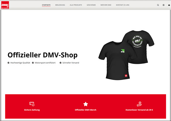 Der DMV hat einen Shop eingerichtet, der über die DMV und MSJ Homepage zu finden ist. Alle DMV und MSJ Artikel können über diesen Online-Fanshop bestellt werden. Egal ob Kleidung, Veranstaltungsmaterial, Werbemittel oder praktische Helfer für den Alltag. Im DMV und MSJ Shop ist für jeden etwas dabei.